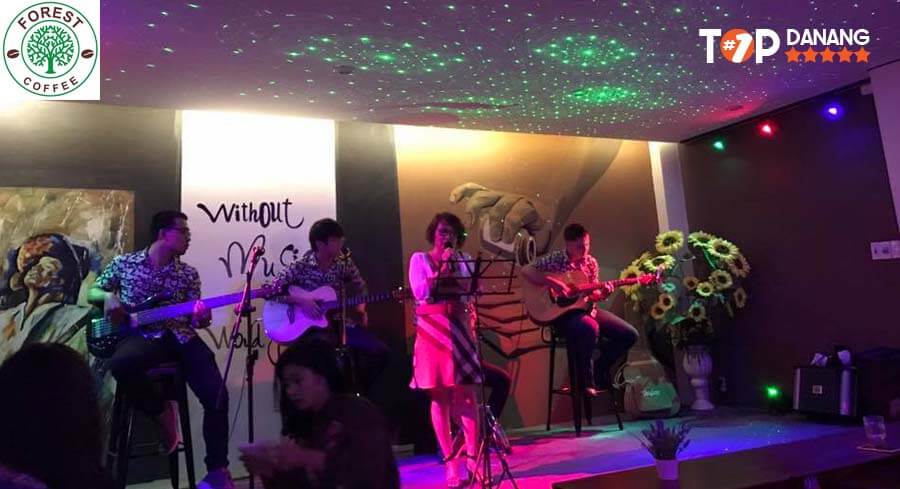 Đến với Forest Coffee, bạn sẽ được trải nghiệm một quán cà phê Acoustic Đà Nẵng thật nhẹ nhàng và trầm lắng trong không gian rộng rãi với đa dạng đồ uống mà lại rất rẻ nữa. Vừa ngồi thưởng thức cà phê, trò chuyện, nghe nhạc Acoustic và ngắm cảnh thành phố Đà Nẵng về đêm lung linh, ảo diệu. Thật là tuyệt vời phải không nào.